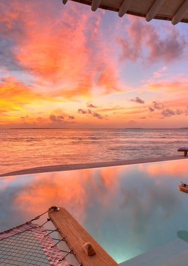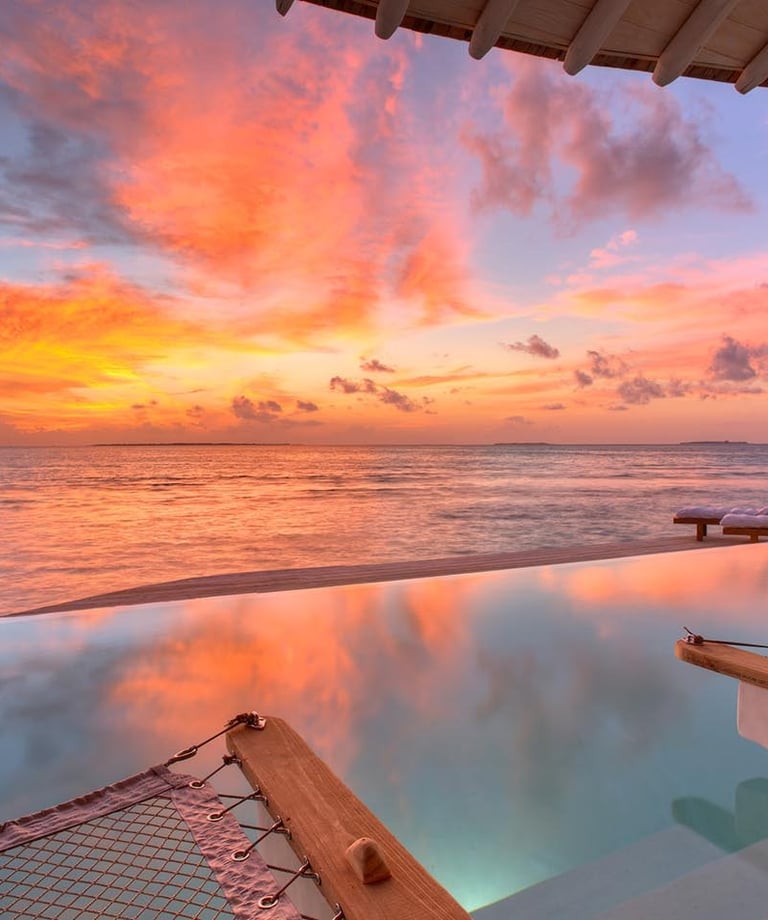 Experience the gentle caress of a warm ocean breeze, the soft sand beneath your feet, and the striking azure hues of both sky and sea. At Gili Lankanfushi, indulge in a lifestyle tailored to your desires. Savor exquisite dishes crafted from locally sourced ingredients infused with international flavors, witness breathtaking sunsets from your elegantly rustic villa, and drift into slumber to the soothing sounds of tranquil waters.